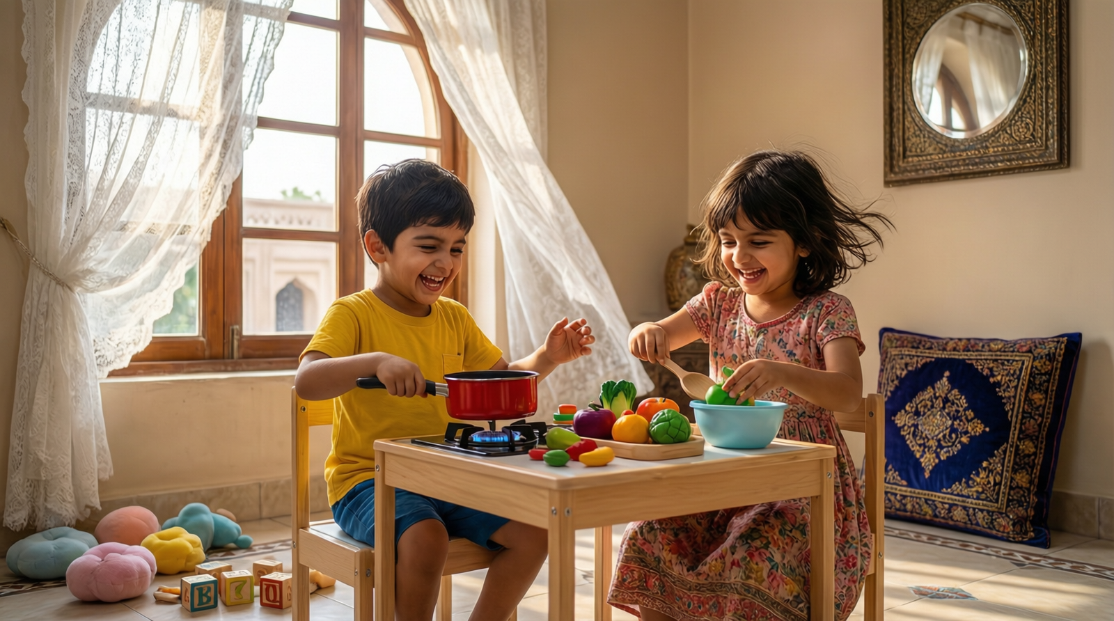 In Pakistani homes, the kitchen is usually the busiest room in the house. Kids watch Ammi and Khala cooking daal, frying parathas, and making chai for guests. Pretend play kitchen toys in Multan give them a safe way to copy all these grown-up actions – without hot stoves or sharp knives.