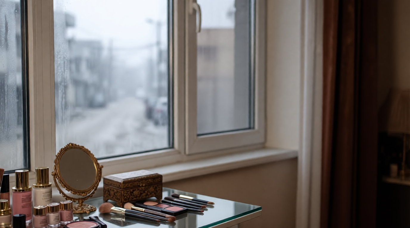 Day–night temperature changes, so your winter makeup needs to be flexible not too heavy, not too sheer