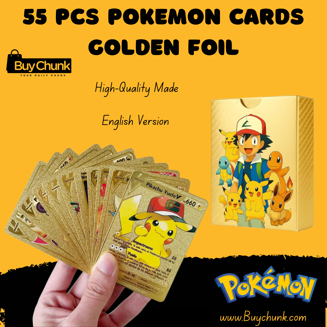 Shine like a true Pokémon master grab your 55 Pcs Golden Foil Cards today!
