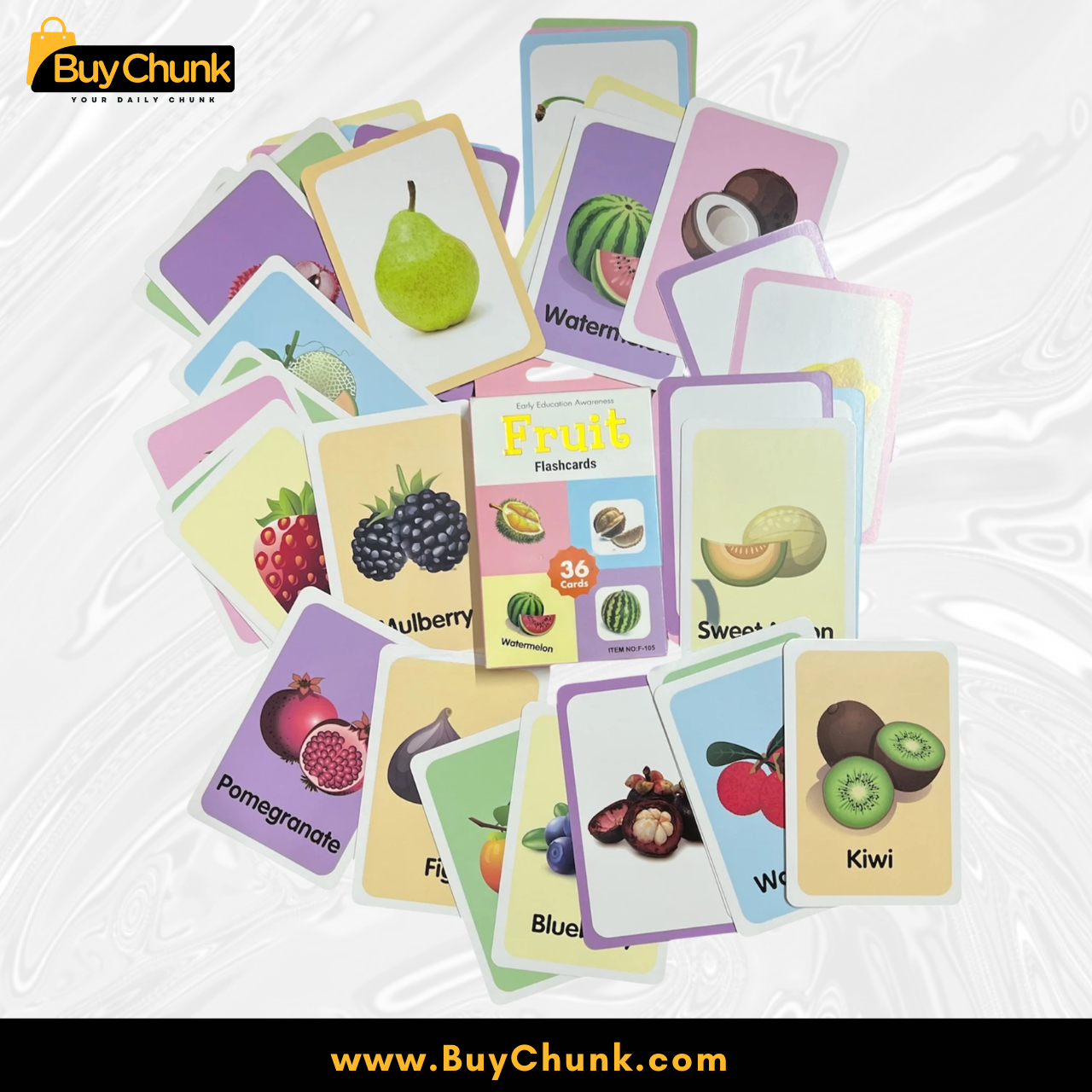Capacity/Size: Set of fruit vocabulary learning cards for kids (quantity varies)
