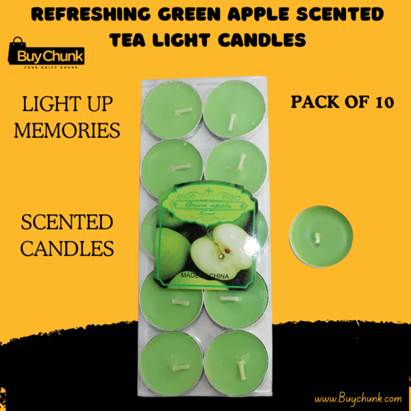 Affordable and available with cash on delivery (COD) across Pakistan, Green Apple Scented Tea Light Candles are a must-have for those who love natural fruity fragrances and stylish home ambiance.