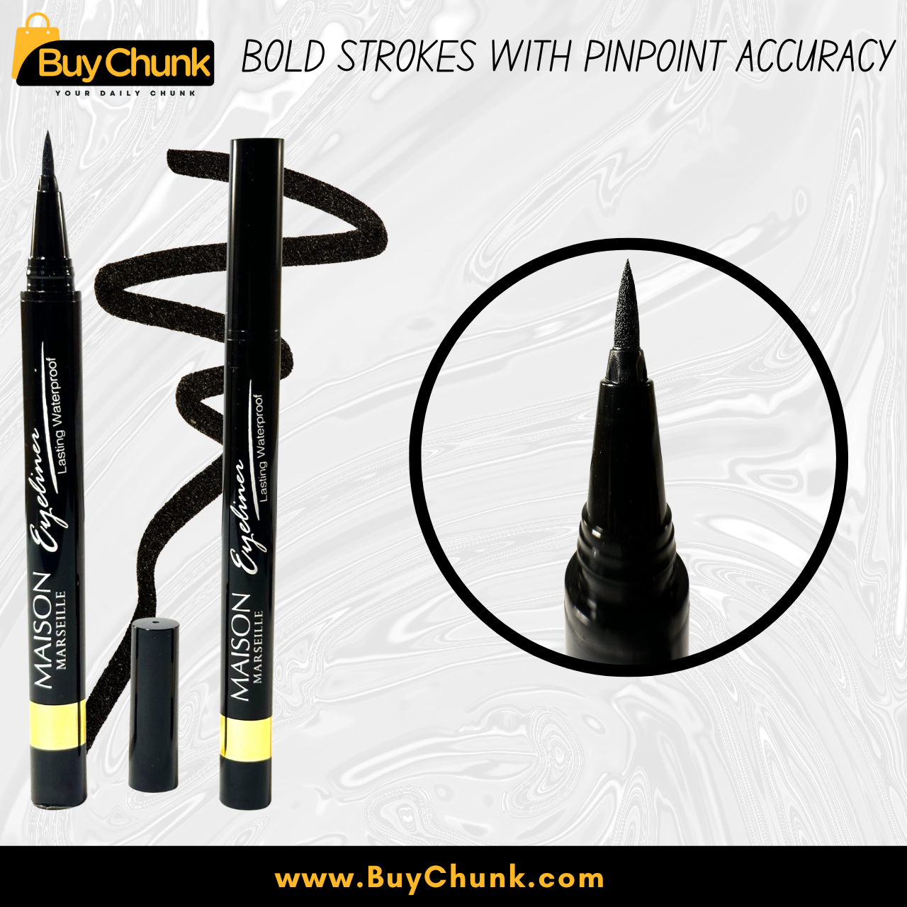 Define your eyes with Maison Marseille Waterproof Eyeliner Pen – bold, smudge-proof beauty in one stroke!