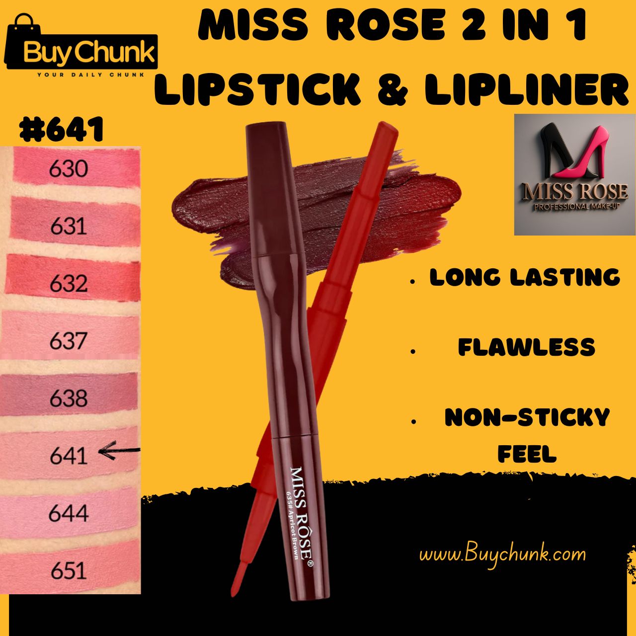 ✅ Add Miss Rose Matte 2 in 1 Lipstick and Lipliner Shade 641 to your makeup kit today!