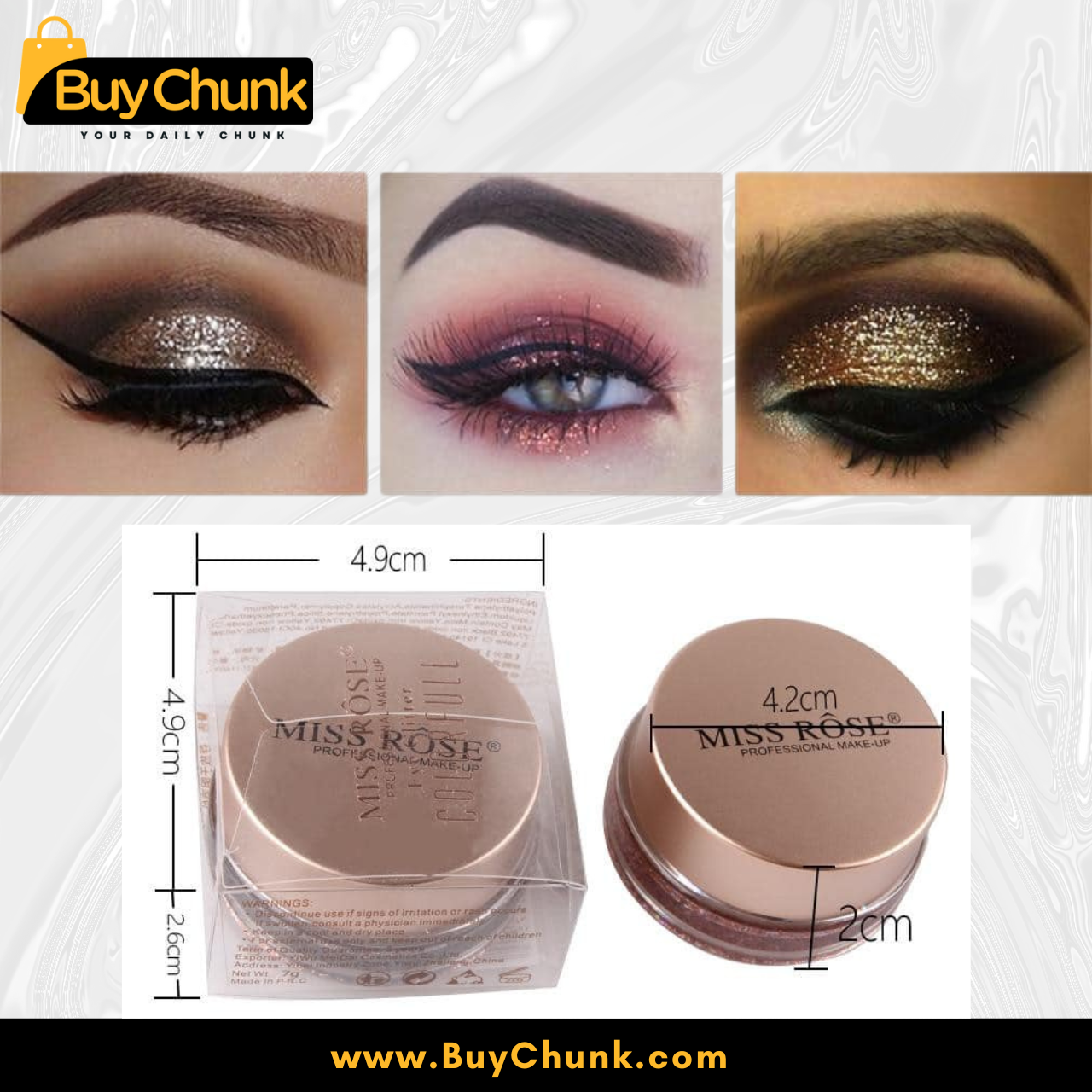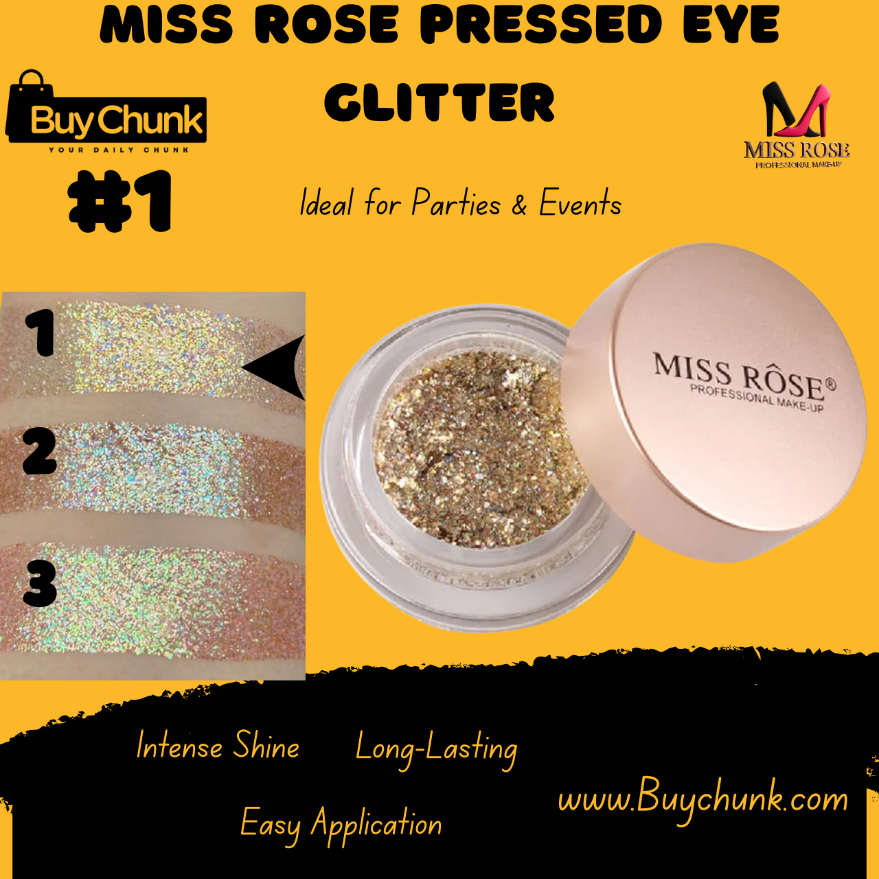 Add sparkle to your eyes with Miss Rose Pressed Eye Glitter Shade 1 – shop now with COD in Pakistan!