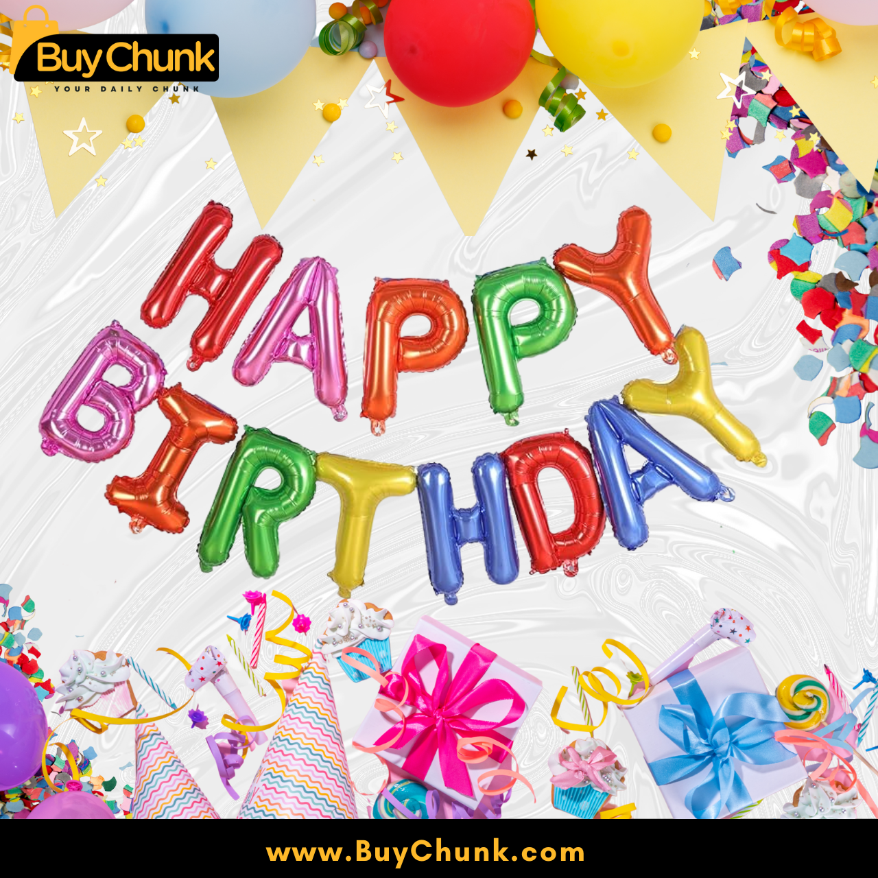 Make every birthday celebration extra special with the Multi Color Happy Birthday Foil Balloon Banner from BuyChunk. Designed for effortless decorating and maximum visual impact, this vibrant foil balloon set instantly brings joy to any birthday scene. Each letter balloon spells out “HAPPY BIRTHDAY” in dazzling, multi-coloured shine that suits both kids’ and adults’ parties. Whether you’re decorating your home, garden, school, or event hall, these lightweight foil balloons create a fun, festive atmosphere.