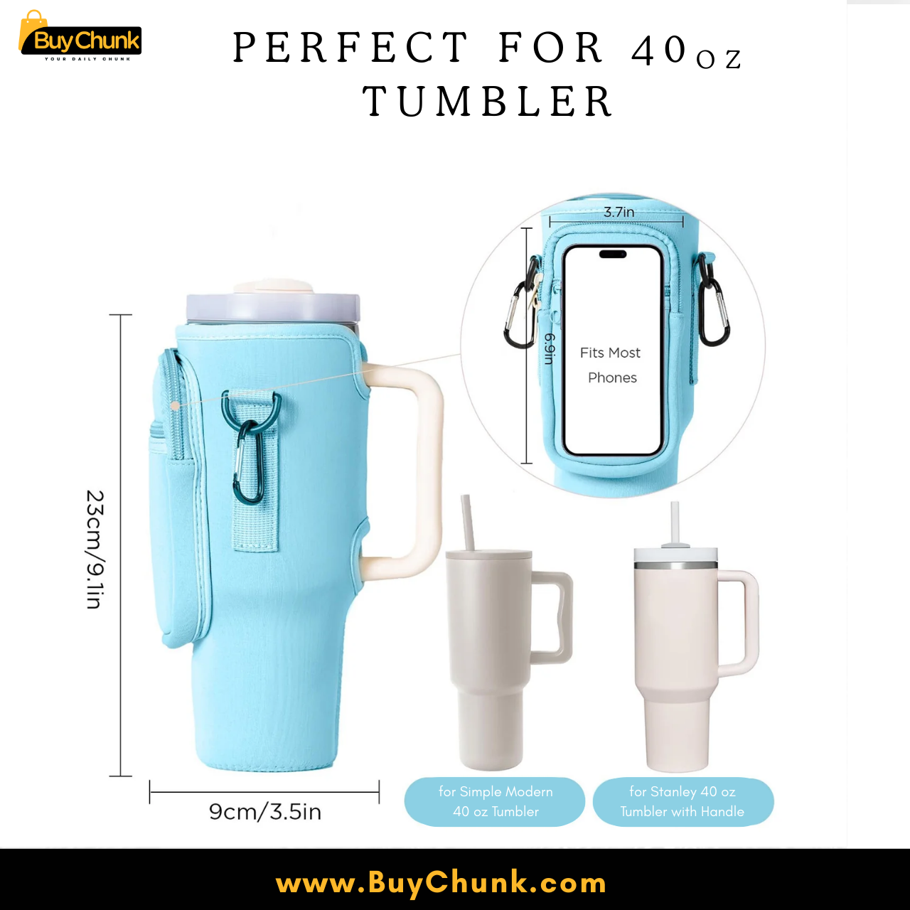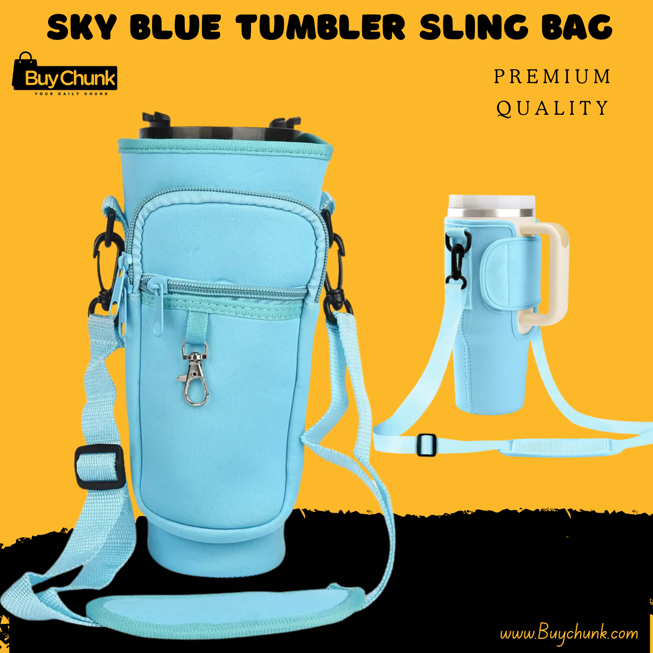 Stay cool, stylish, and hands-free get your Premium Sky Blue Sling Tumbler Bag today!