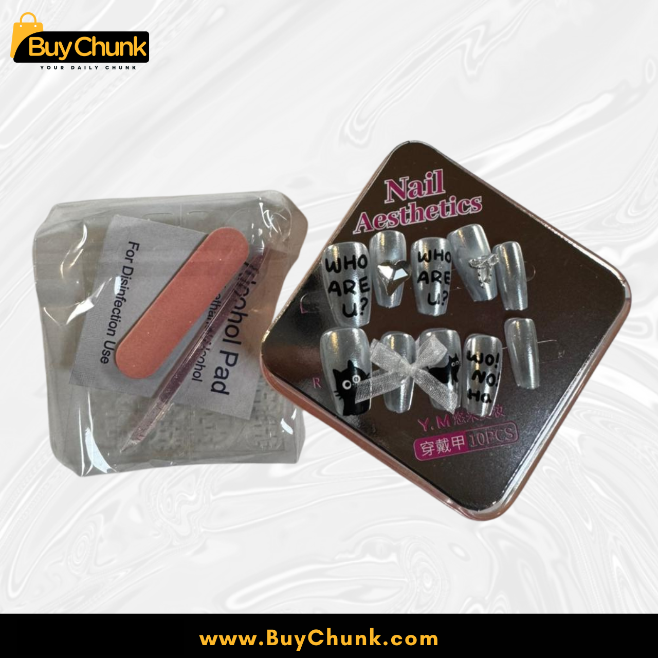 Transform your nails instantly with Silver Chrome Press-On Nails, the perfect blend of style, shine, and convenience. Designed for Pakistani women who love effortless glam, these metallic press-ons deliver a salon-finish chrome look in minutes no glue mess or drying time required. Whether it’s Eid celebrations, a wedding event, or a casual hangout, these nails add that mirror-like metallic edge that complements every outfit. Each set includes various nail sizes for a natural fit and a secure hold lasting up to a week. Affordable, reusable, and easy to apply, Silver Chrome Press-On Nails are your secret to flawless nails without salon visits or high costs.