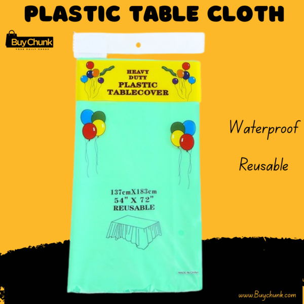 Keep every party mess-free with BuyChunk’s waterproof, reusable plastic table cover!