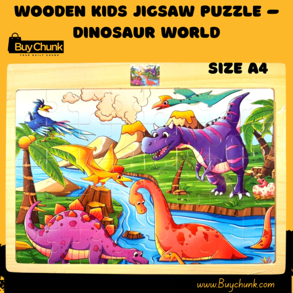 Let your little one dive into the Jurassic era with the Wooden Kids Jigsaw Puzzle Dinosaur World, a fun and educational toy designed to spark imagination and cognitive development. Crafted from high-quality, eco-friendly wood with smooth, rounded edges, this puzzle ensures safe playtime for toddlers and preschoolers. Each vibrant dinosaur piece helps children recognise shapes, colours, and species while improving their hand-eye coordination and problem-solving skills. Perfect for indoor play in Pakistan’s warm climate, it’s a durable and engaging toy that keeps kids entertained without screens. Parents will appreciate its sturdy build and easy-to-clean finish ideal for gifting during Eid, birthdays, or school events.